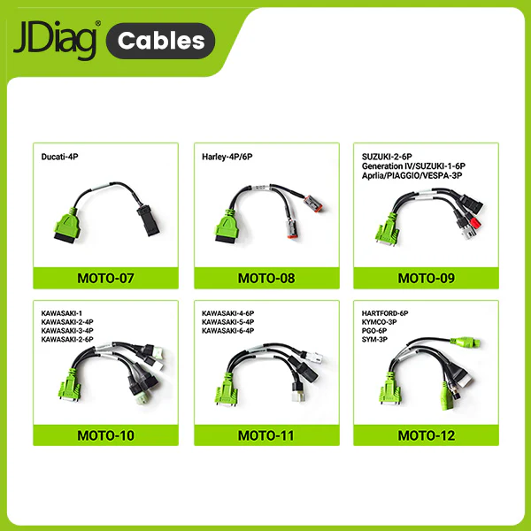 JDiag OBD2 Test Cables, With JDiag M100Pro/M200/M300 Motorcycle Scanner, For BMW-10P, Harley-4P/6P, YAMAHA-3P/4P, HONDA-4P
