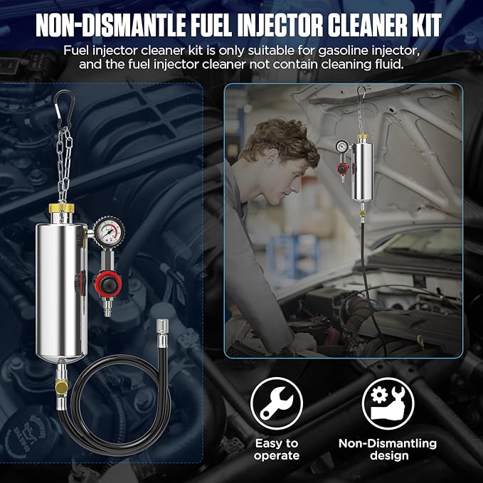 Fuel Injector Cleaner Tool Kit, C100 Non-dismantle Fuel Injector Cleaner Machine,1000ML 150PSI Fuel Injection Systems Cleaning Tools with Various Adapters and Packing Box for Gasoline Injectors