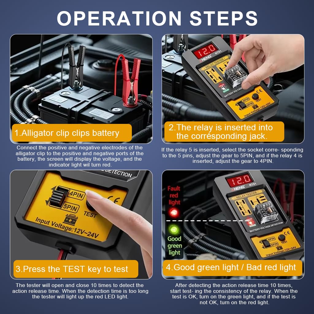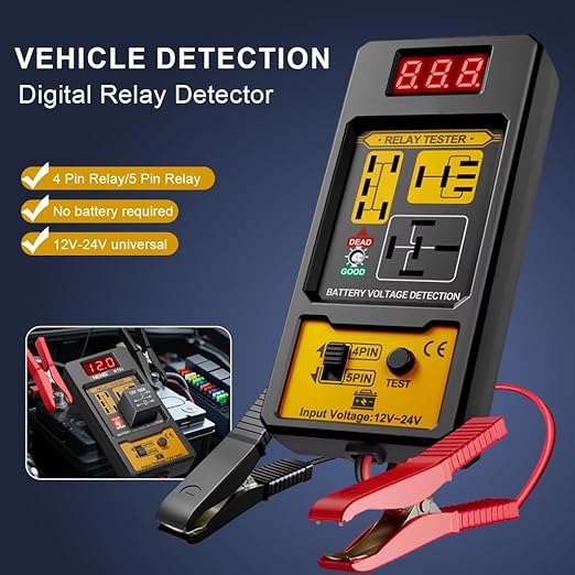12V/24V Car Battery Tester 4/5-Pin Relay Tester with LED Indicator Battery Troubleshooting Device Battery Analyzer Universal Vehicle Battery Tester for Motorcycle, Car, Trucks, Boat, RV