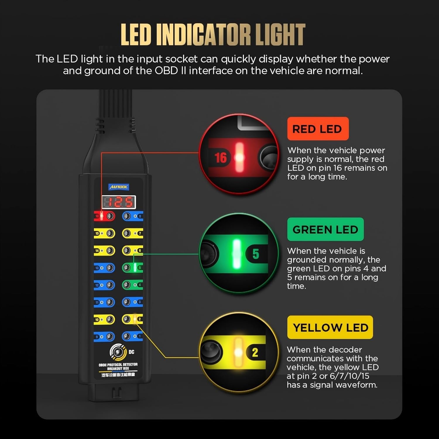 AUTOOL OBD2 Breakout Box OBDII Protocol Detector for Monitoring Signals of Protocol/Power/Grounds,CAN Test Box Fault Diagnosis Scan Tool for All OBDII Vehicle