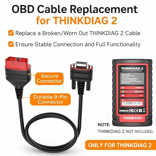 THINKDIAG 2 OBD Cable, 16 Pin Connector, Compatible with THINKDIAG 2 Diagnostic Scanner