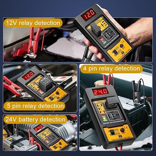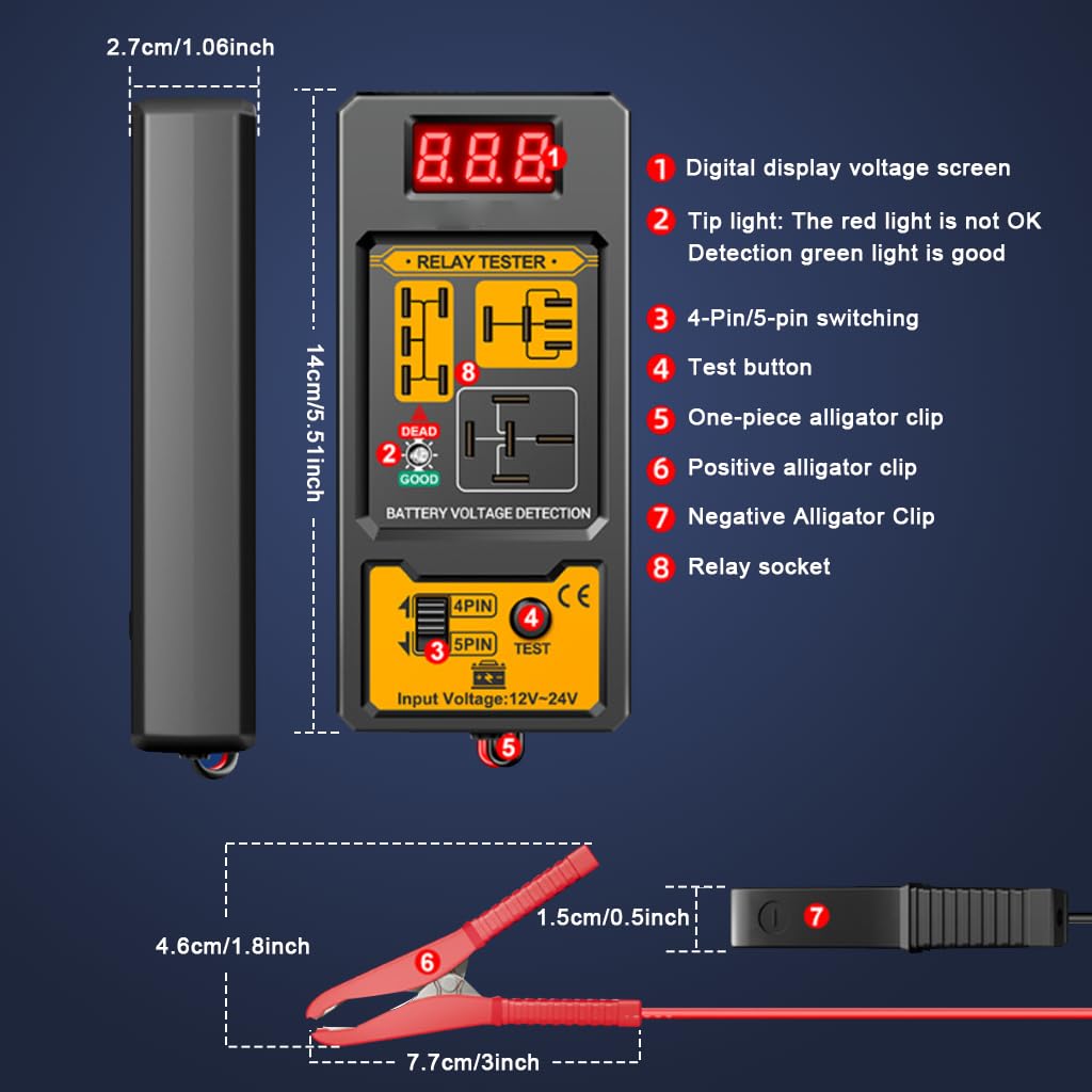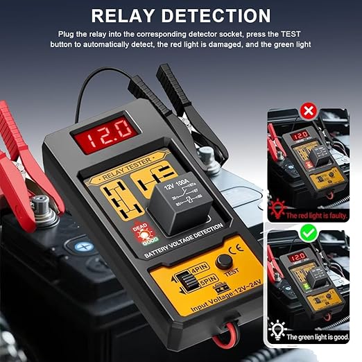 12V/24V Car Battery Tester 4/5-Pin Relay Tester with LED Indicator Battery Troubleshooting Device Battery Analyzer Universal Vehicle Battery Tester for Motorcycle, Car, Trucks, Boat, RV
