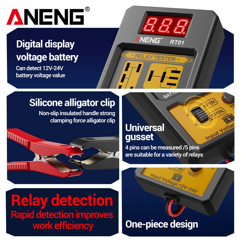ANENG RT01 Automotive Relay Tester Digital Voltage 4-Pin 5-Pin 12V 24V - RT01 - Black